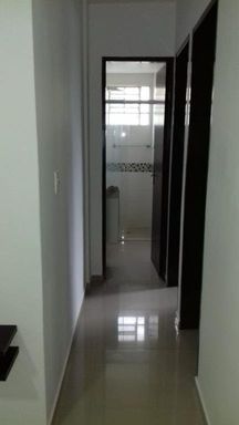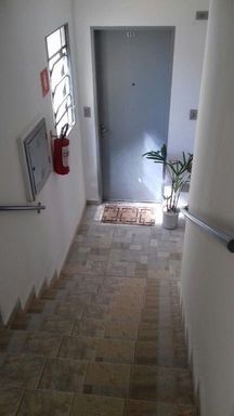 Bloco com piso frio em hall e escadas.